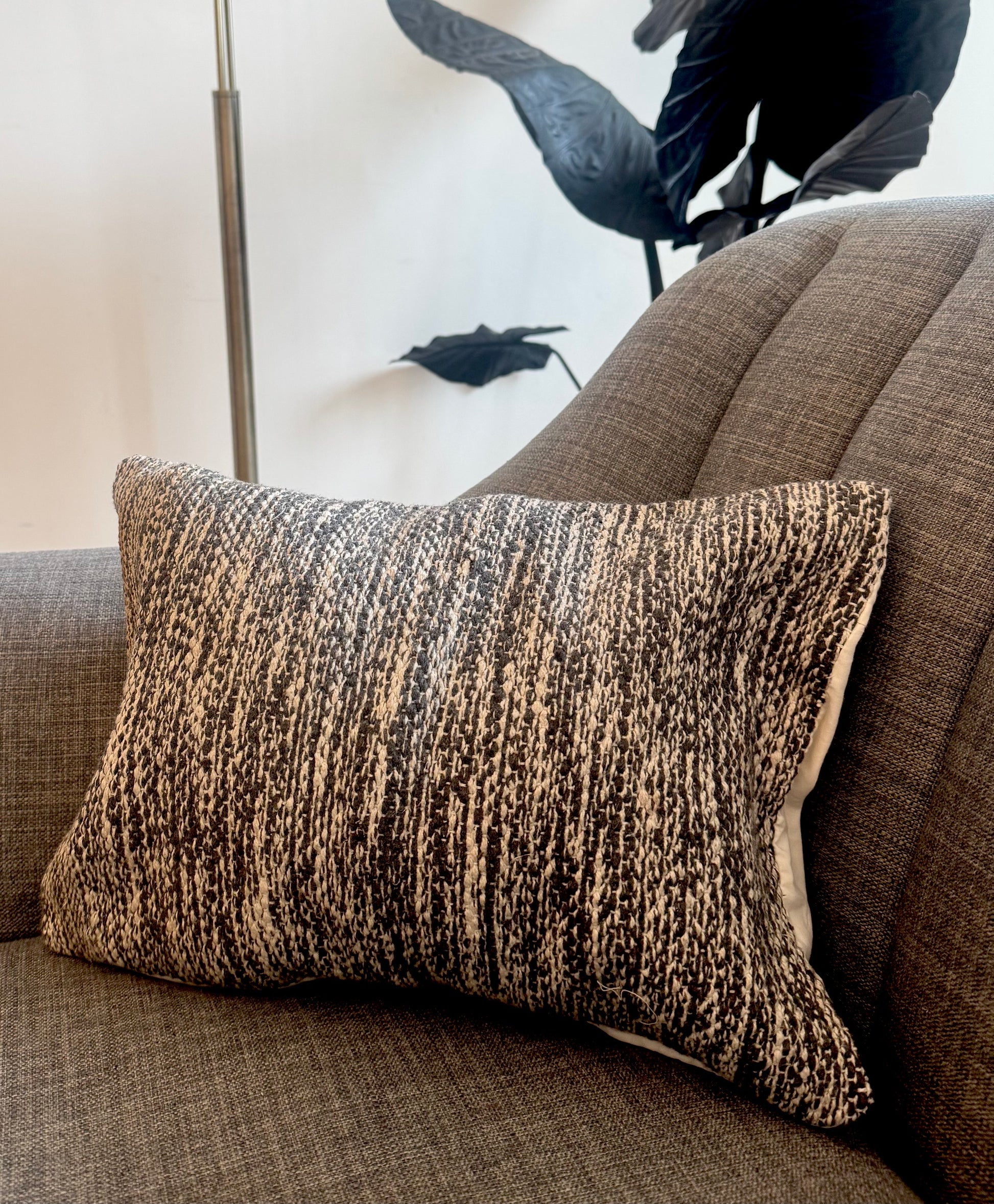 Elevate your space with the Monochrome Loom cushion, featuring handwoven black and white kilim patterns. Its striking geometric design blends traditional craftsmanship with modern minimalism, adding texture and timeless style to any room.